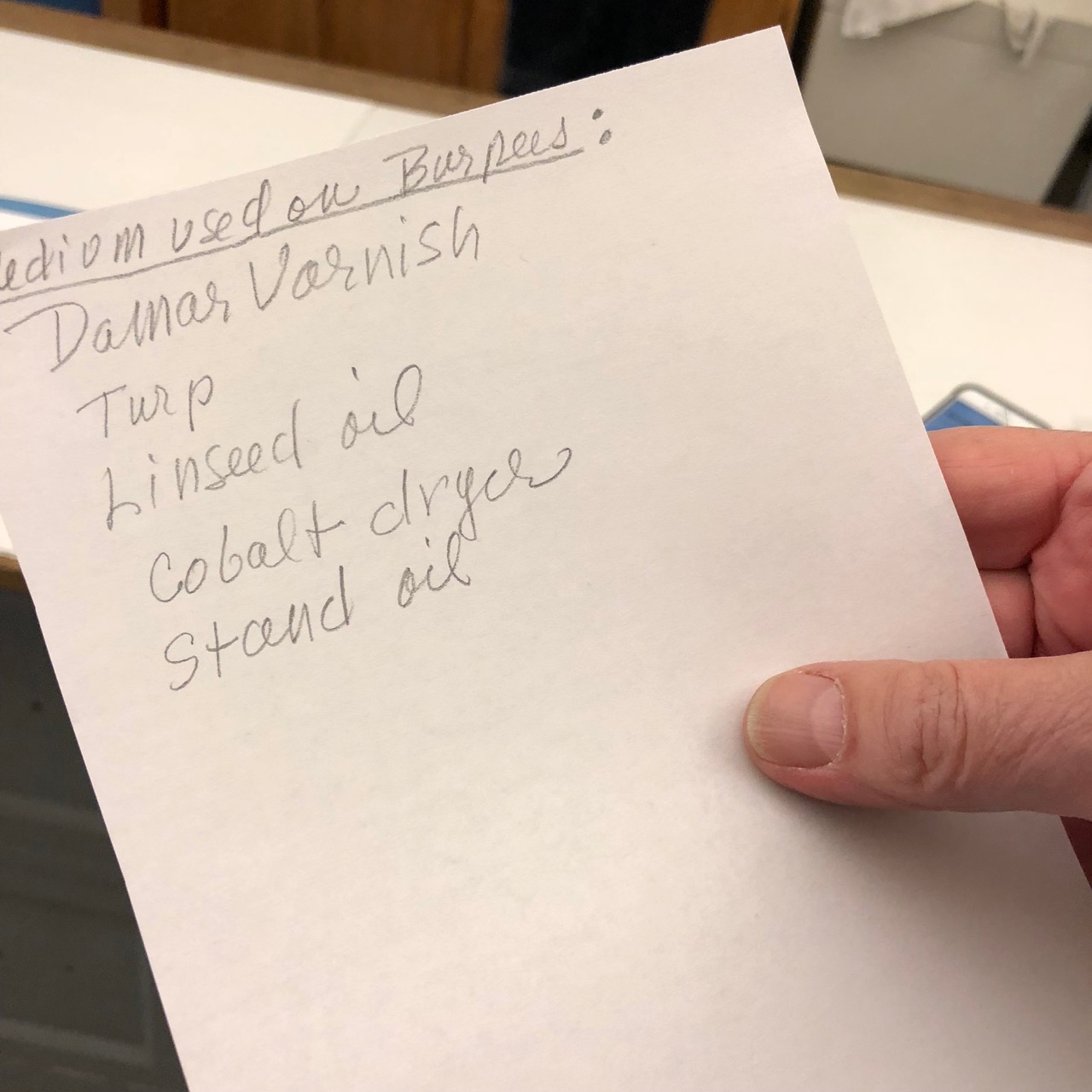 and she shared Mason’s formula for his Burpee oil paintings…(it’s no wonder he got sick…)