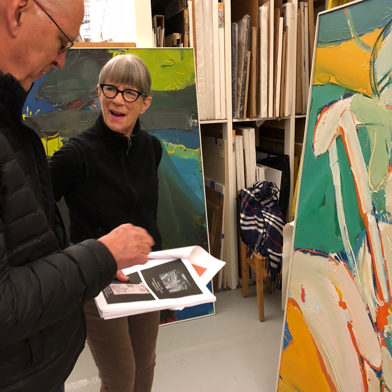 Gene and her husband just put their house on the market and these two big Alden Mason paintings are in her studio just now!