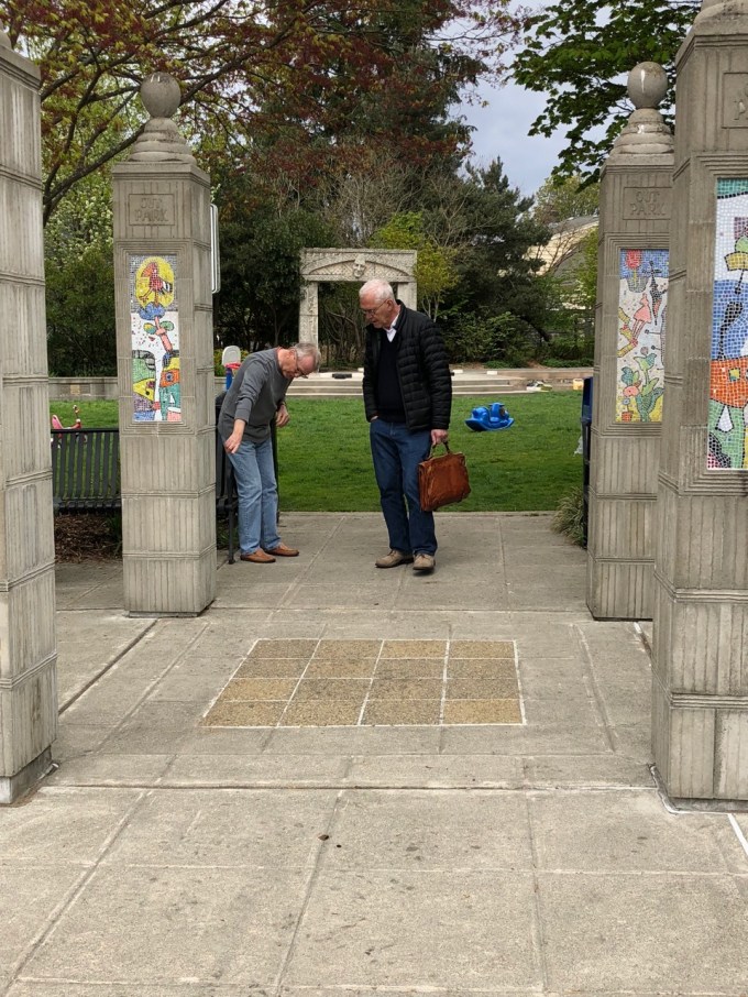 right across the street from a park that has four Mason mosaics