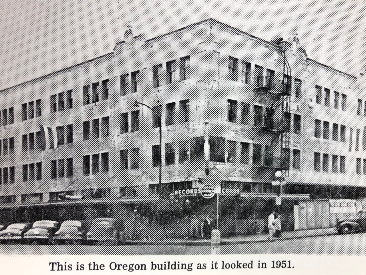 The Montgomery Ward Building site & building, Liberty Street (note that little gothic revival cottage marooned downtown)
