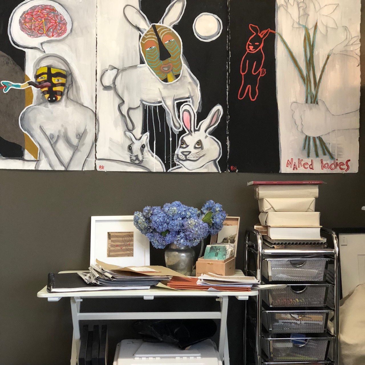 Well we’re ALL trying to “live in the moment”…to “lessen our screen time”…to enjoy our lives as we live them…yes?  Yes.  That precludes writing about these moments, but I continue to gather the images as if I WERE writing about them, and now I’m way behind.  So how about trying to catch up with just the images…kind of a serial Instagram?  We set up for summer, went to White Salmon, WA, for George’s birthday, we hung out with Sidney (see if you can see the big announcement!), Roger had his portrait painted by Erik Sandgren, we looked at art and made art and wrote things and celebrated birthdays and mourned losses, and then the fourth of July, the heart of the summer.   And that’s where we are…the heart of the summer.  Stay cool friends.