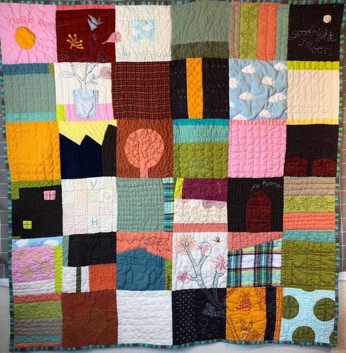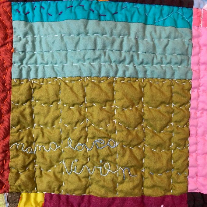 How beautiful and fun and creative and joyous is the quilt you composed for Vivien! What a blessing to have a loving artist grandmother.