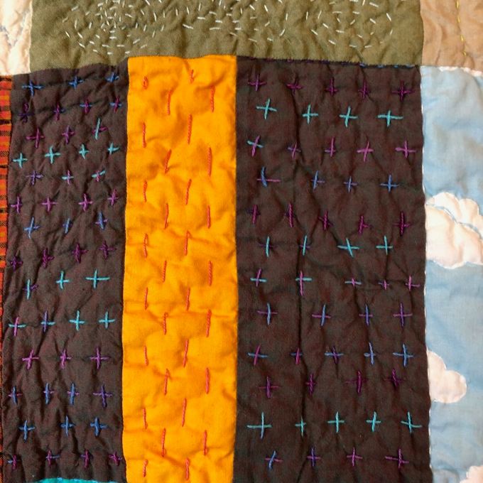 4. Your quilt for Vivien is everything you do best with quilts, using your painter’s eye, your playful stitching-some of it very fancy-and heaps of love. Can’t think of a better welcome for a new granddaughter. Xo