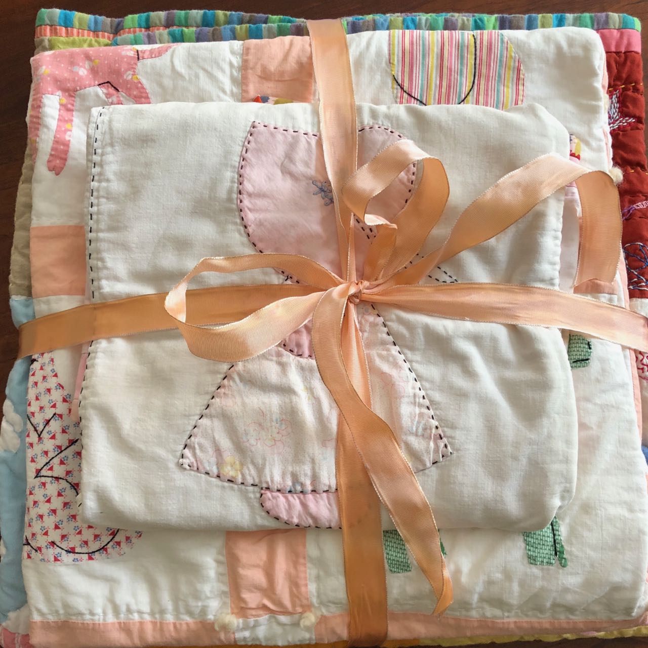 I might have mentioned we have a new granddaughter coming soon!  Sidney turns 5 this Friday and within a couple of weeks will be joined by his sister Vivien Grace.  Sidney and his Mom came down to Salem for lunch Saturday which turned out to be the perfect moment to turn over the quilts…