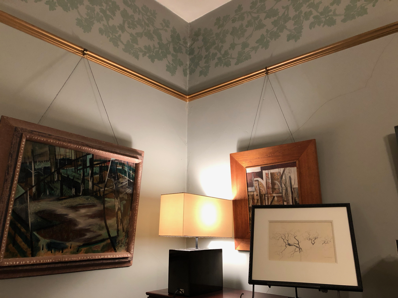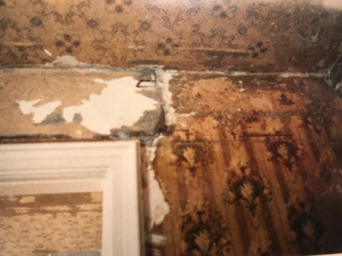 4. Back in the late ’80s when I lived in Munich we stripped wallpaper off our 1905 apt.’s walls and discovered remnants of Art Nouveau frescos! In a few spots where they weren’t too damaged I did trompe l’oeil painting of “missing plaster chunks” – so you could see the fresco bits underneath. Since this seemed very serious, in another spot where a chunk came off the bottom corner of a wall in the hallway, I bought tiny toy construction machinery and let it work away down there in the hole.