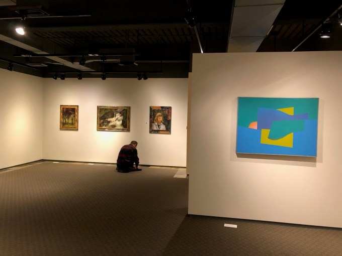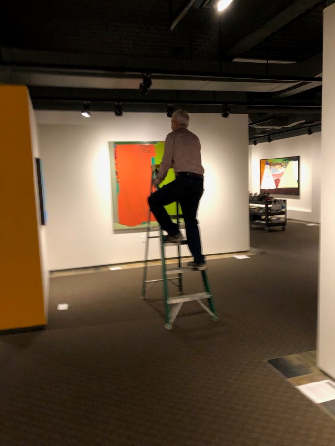 We dropped in to the Hallie Ford Museum of Art today to see the progress on the installation of the exhibition of Lucinda Parker’s paintings. R’s cousin Lisa was visiting overnight and though she has her copy of R’s book on the work of painter Lucinda Parker,
