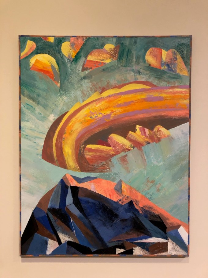 The paintings are large and vibrant and look great in the museum’s varied set of spaces…