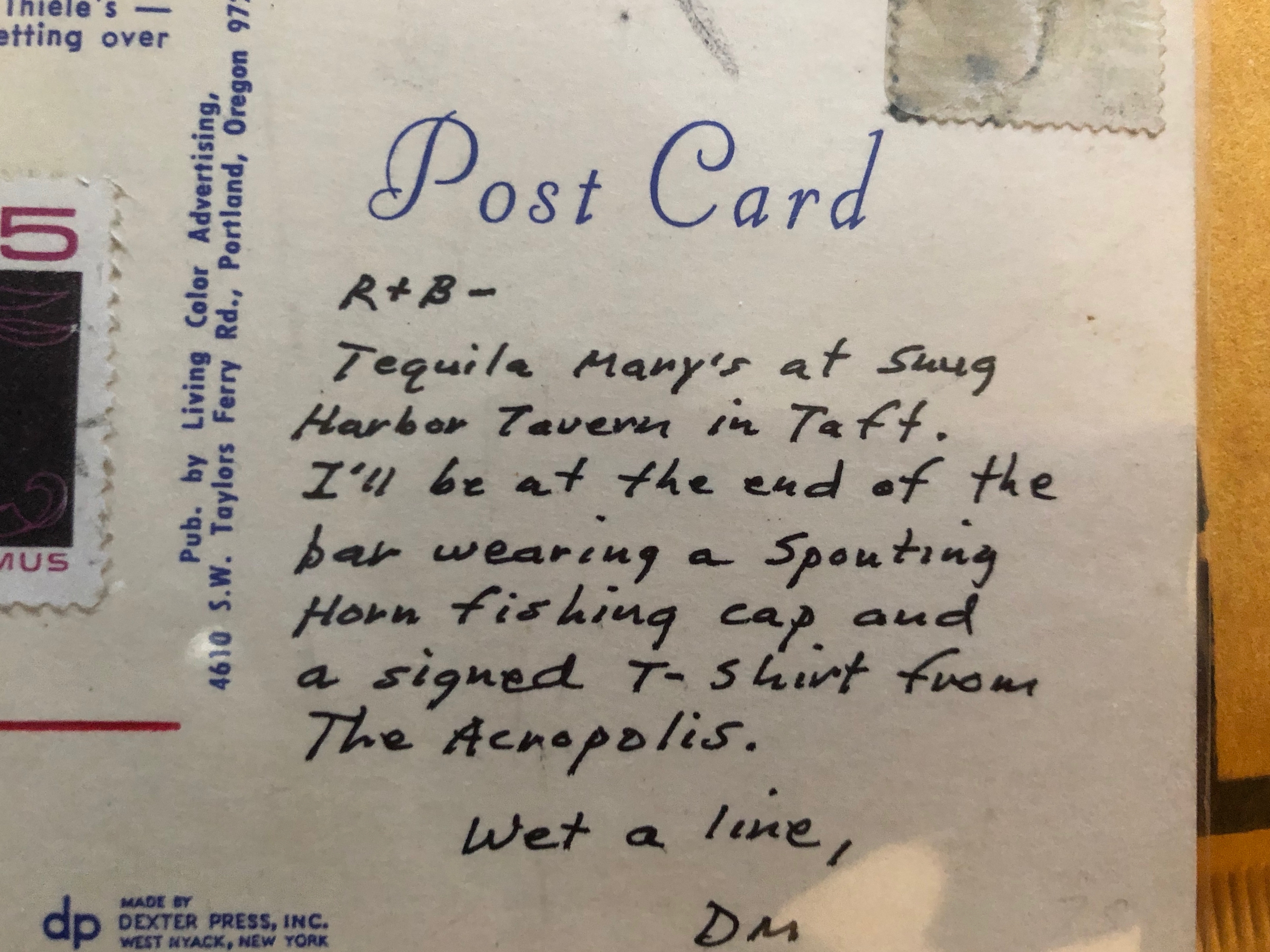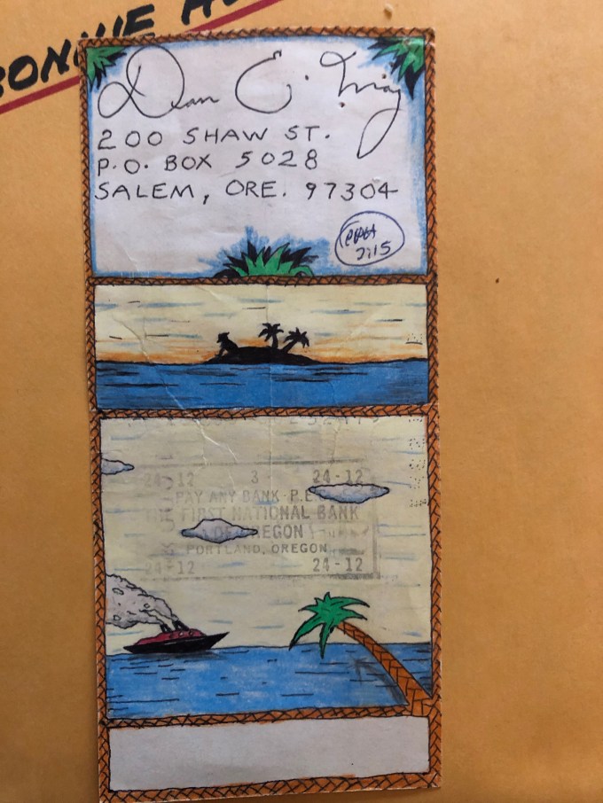 He worked all the time in a single-minded way that Islanders admired.  He drew on the back of your checks when you bought something (I always felt the modern “Do not write  below this line” on checks was the banks trying to subvert Dan…)