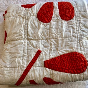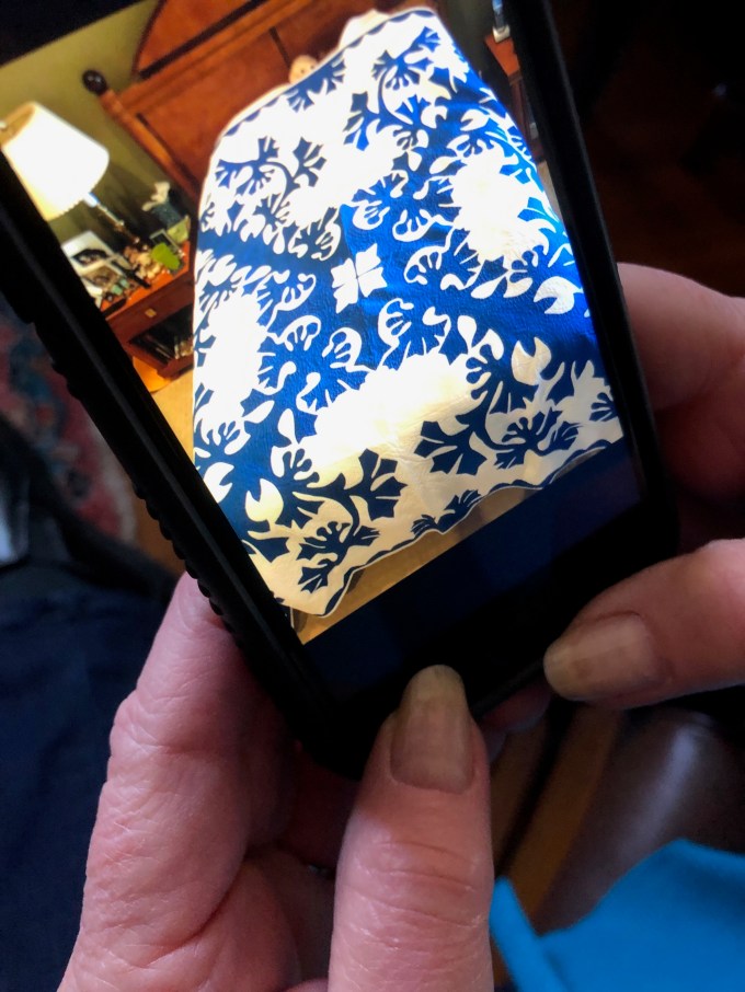 It was interesting how often we used our devices to explain something…Here’s the Hawaiian quilt Kate’s grandmother made on a bed at Kate’s sister’s house…