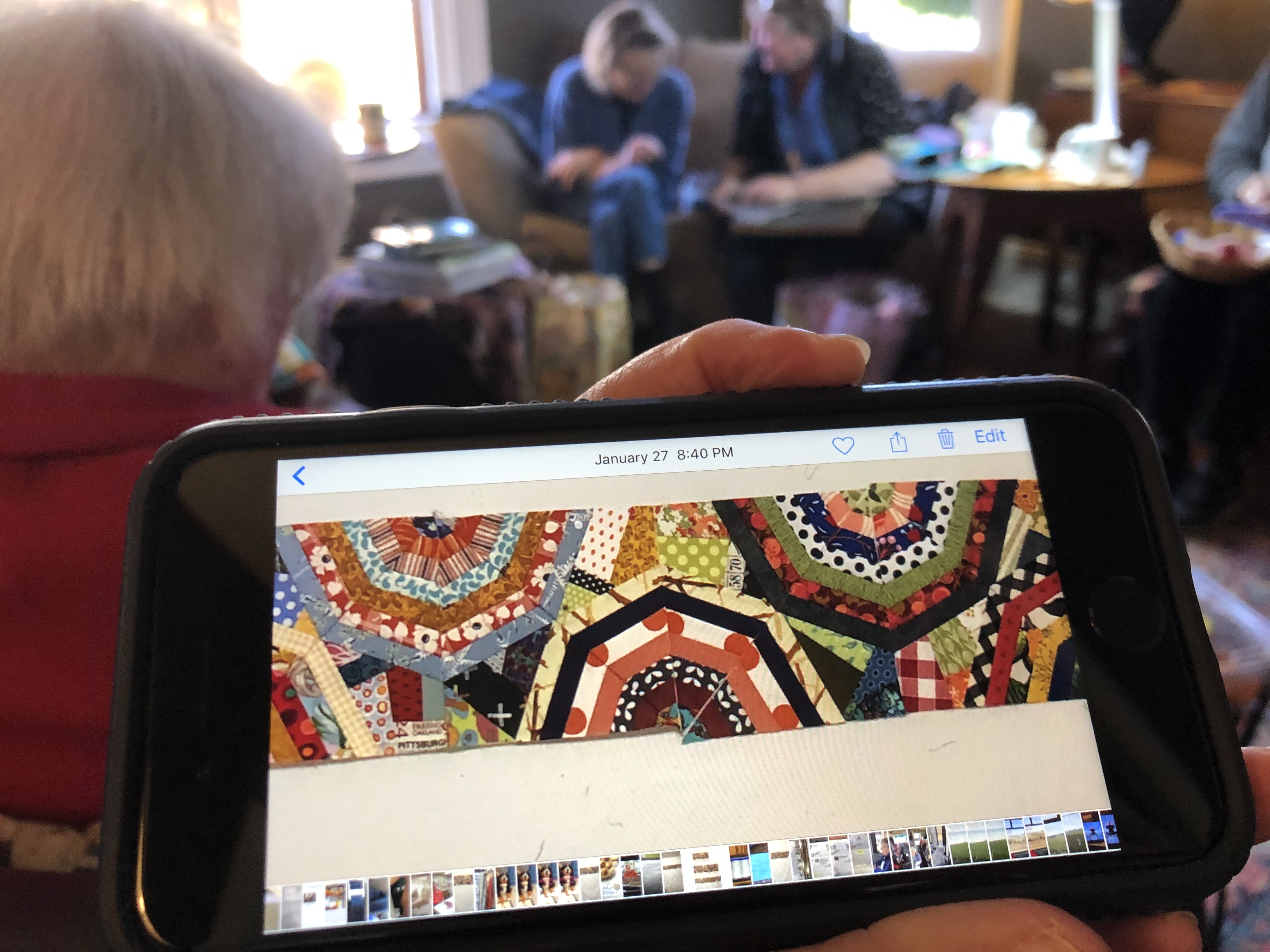 It was interesting how often we used our devices to explain something…Here’s the Hawaiian quilt Kate’s grandmother made on a bed at Kate’s sister’s house…