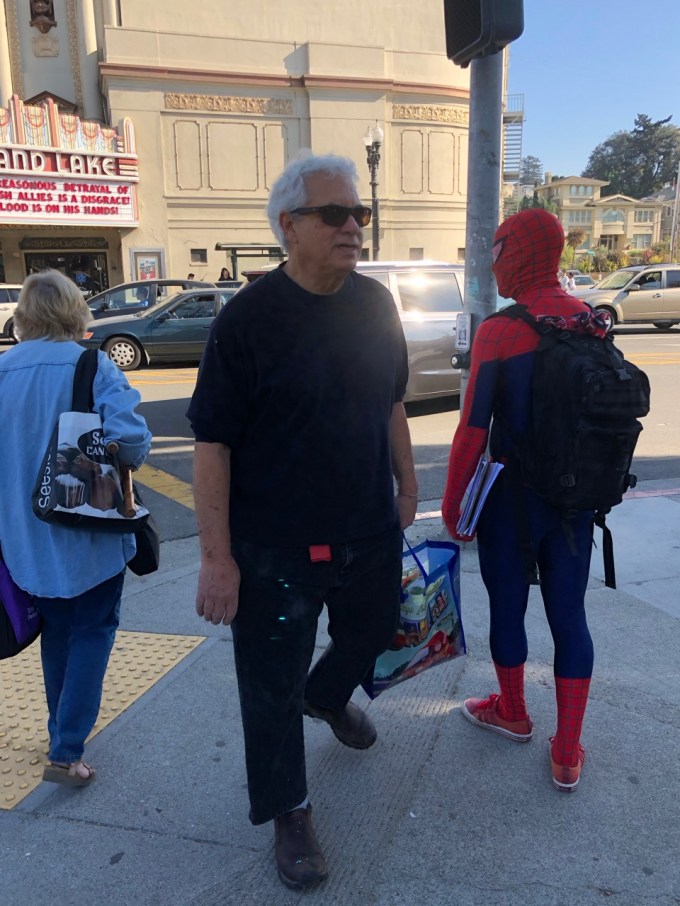 Spiderman trying to get some signatures on a petition