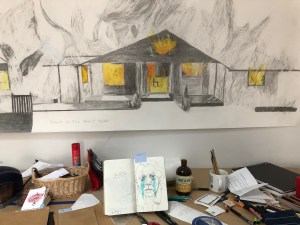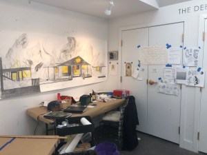 and headed home.  The Salem Art Association has been good to me over the years…this was the third time I have had the opportunity to use the Annex for a project (many thanks Kathy Dinges).  I had fun setting up my stuff in the Annex to use the space to sort my 25 years of drawing books for my exhibit (“Memory as Myth”) at the Hallie Ford Museum of Art May 9-August 9th this year (fingers crossed on that one).