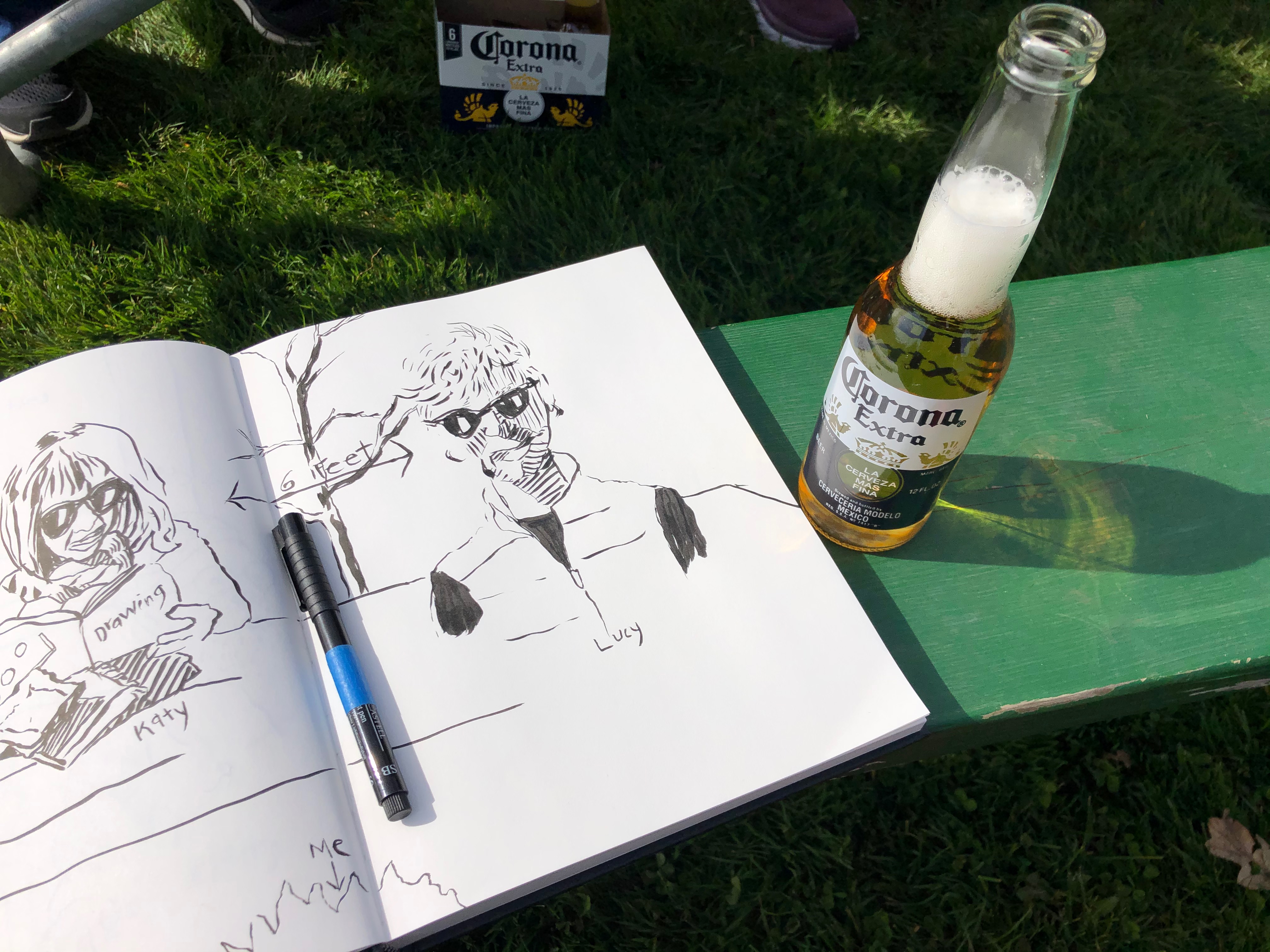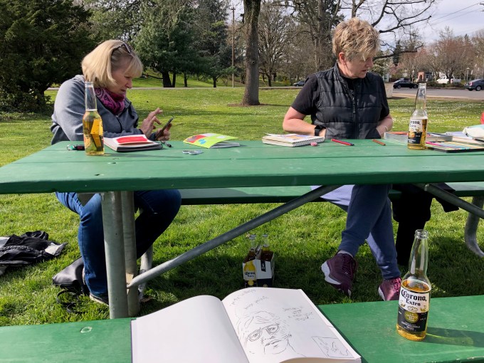 3. What a wonderful day for drawing and drinking in the park!!! Reminds me of my youth. You girls do know how to make the best of a bad situation……Have to wonder what the hoarders are going to do with all that flour, and why? They will be rewarded when they find the bugs!