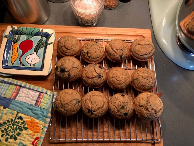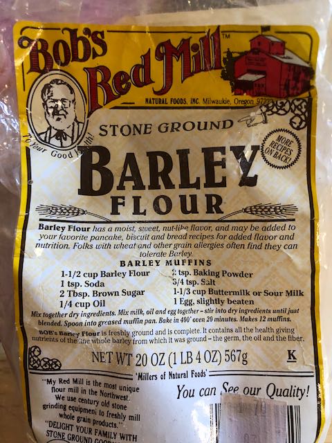 I made barley flour muffins from a package I found in the freezer with some slightly-freezer-burned-frozen blueberries, and they’re good!
