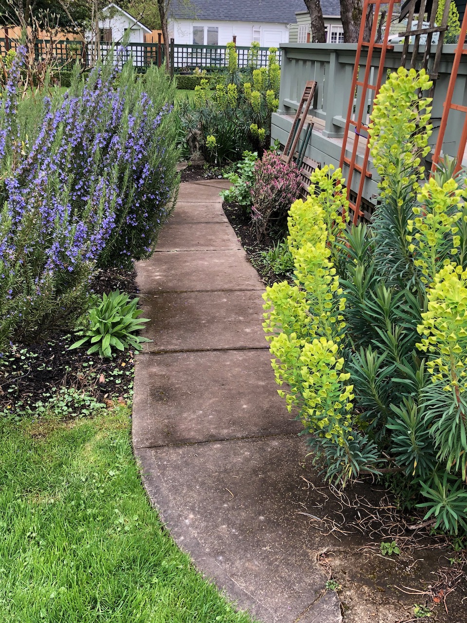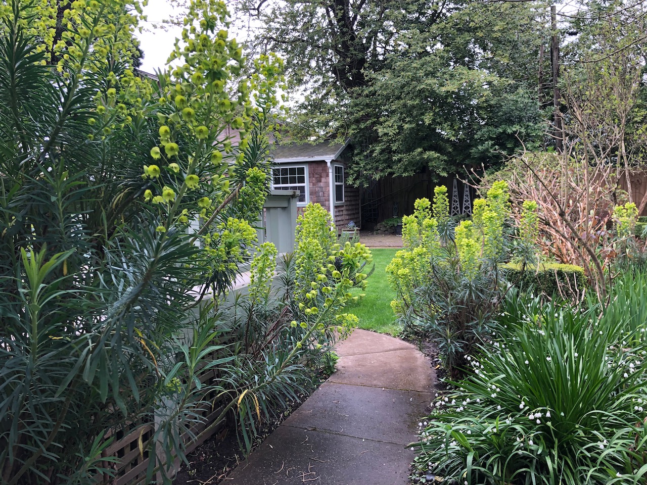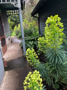 No “topic” today…a walk around the house before heading into the neighborhood, wherein I am grateful I didn’t cut down the Euphorbias in the fall…