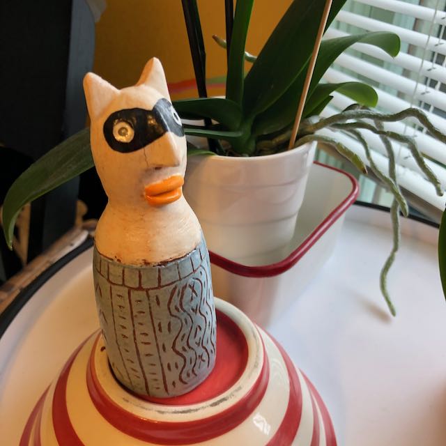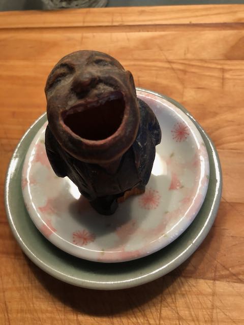 For some reason I have been surrounded by these little familiars all of my life and they delight me. They are funny and fun and allow even a grown up and very serious person like myself, ahem, to play. Right now I need protection and I most certainly need to play, so today’s game was sort of a “familiar” census, since census is in the air, at home here. The very first one to delight me when I was 5 maybe, was this guy who always sat on Pop’s kitchen table with his mouth full of toothpicks…