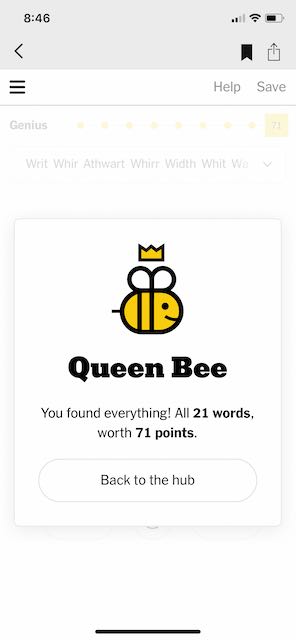 Did you know that if you get EVERY word on the BEE you can be a QUEEN BEE?  So this happened…