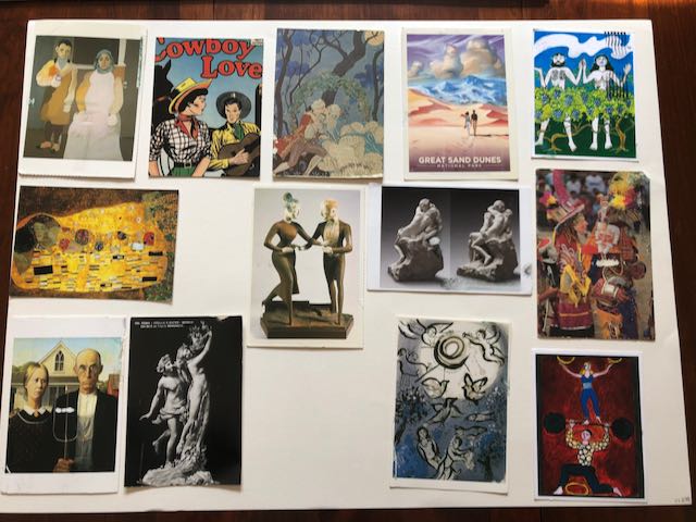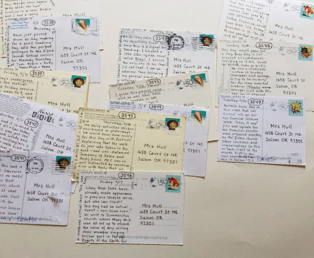 and Ellen sent her snail blog methodology of how she lines up the group (“Couples II” ), numbers them and stamps them, and the stacks them neatly to write everyday. Here’s the visuals…Ellen first