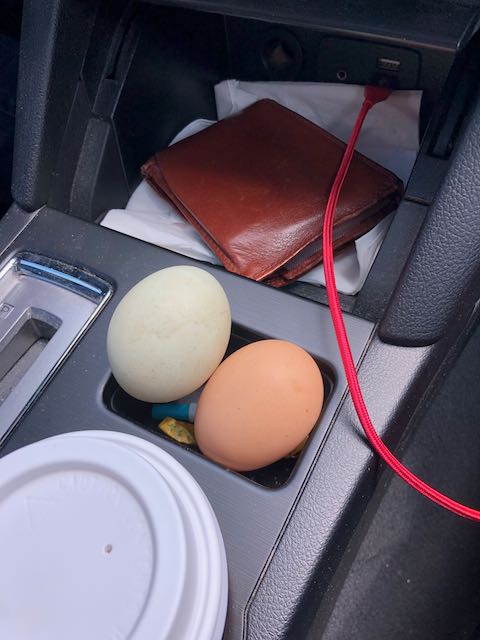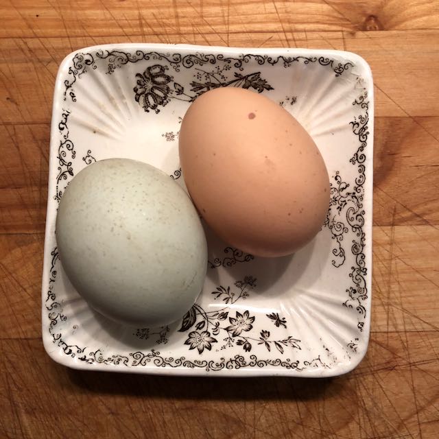 and while out wandering in the car, we saw a friend who gave us two fresh eggs from her chickens (thanks MLZ).