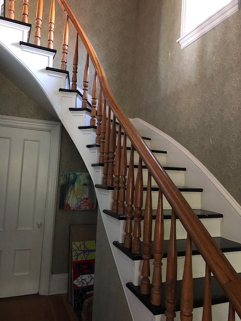 Step Three, me to R: “So what around here is your favorite thing? What made you ‘gasp with delight’?” An interesting discussion followed wherein he said really it was the total environment that was the delight…ALL the things that make up this “collection” we live in. This was kind of a broad concept for a photo, so I pressed him a little and the house and it’s architectural details emerged as favorites for him. Which reminded me of the first time we stepped in the front door on a house hunt. We saw the stairs and I said…”this is it.” And it was…