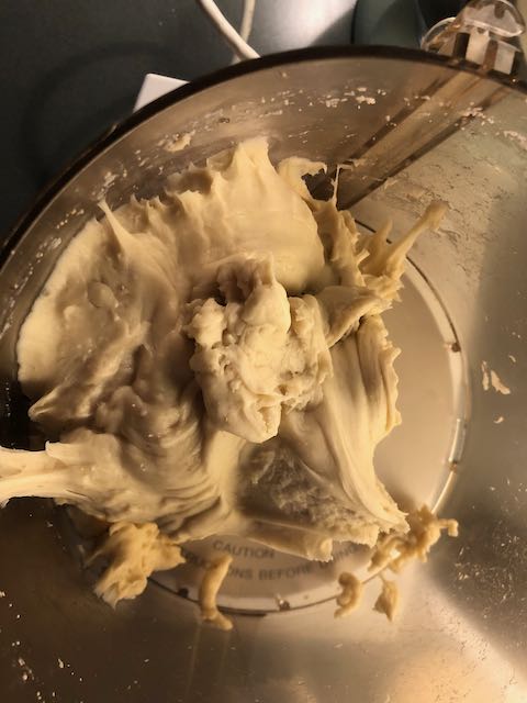 * Lay a 12 inch long piece of plastic wrap on a clean surface.  Work the dough into a rectangle on the plastic…about 8 ” long and 6″ wide.  Work the dough into a rectangle on the plastic (about 8″ long and 6″ wide).