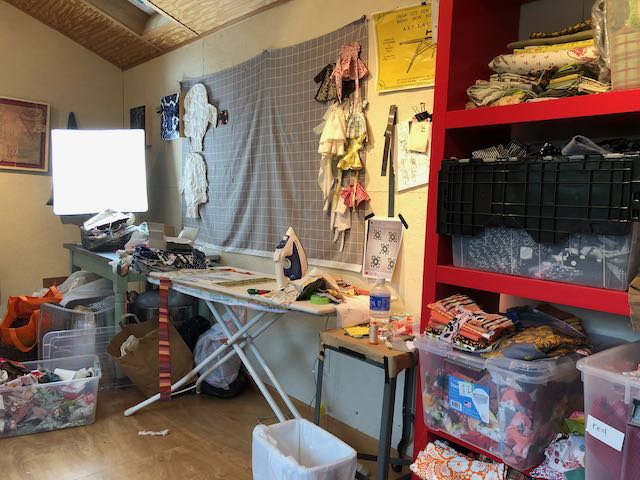 So this goes out to Linda and Mary. We cheer each other up. One day I made a drawing with them both on speaker phone. We go waaayyy back. My sewing studio is a mess but come on in…