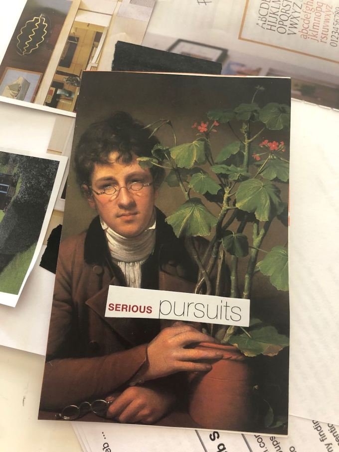 I found this little collage postcard I made last year cutting up a museum calendar as a Valentine but which I never sent, using a portrait of Rubens Peale painted by his brother Rembrandt Peale, 1801, hanging in the National Gallery of Art in Washington, D.C. Rembrandt and Rubens were two of 17 children of the painter Charles Willson Peale, most of whom were named for artists or scientists. In actual fact Rembrandt DID become a painter and Rubens a botanist and the painting is not only a portrait of the 17 year old Rubens, but also of the geranium “the first specimen of this exotic plant ever grown in the New World.” It is interesting to imagine these American boys growing up in a young America. Black men and women in the America of Rubens Peale were not free. None emerged unscathed.