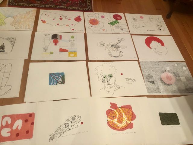 This east wall will have a grid of 16 of the 65 new Corona Series drawings I’ve been working on during quarantine