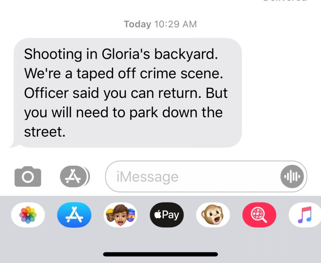 And then the day unfolded. A traffic stop gone wrong, a chase into our neighborhood and a death and shooting. Here. In Gloria’s lovely flower bed, carefully tended for years now, lay a dead man.