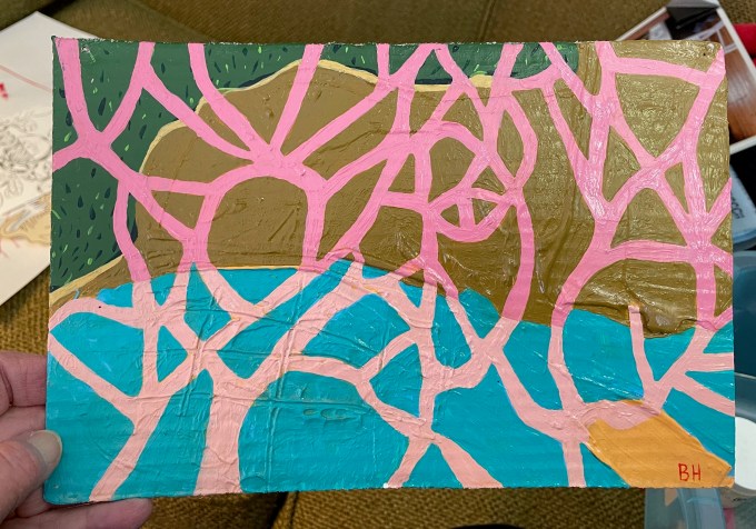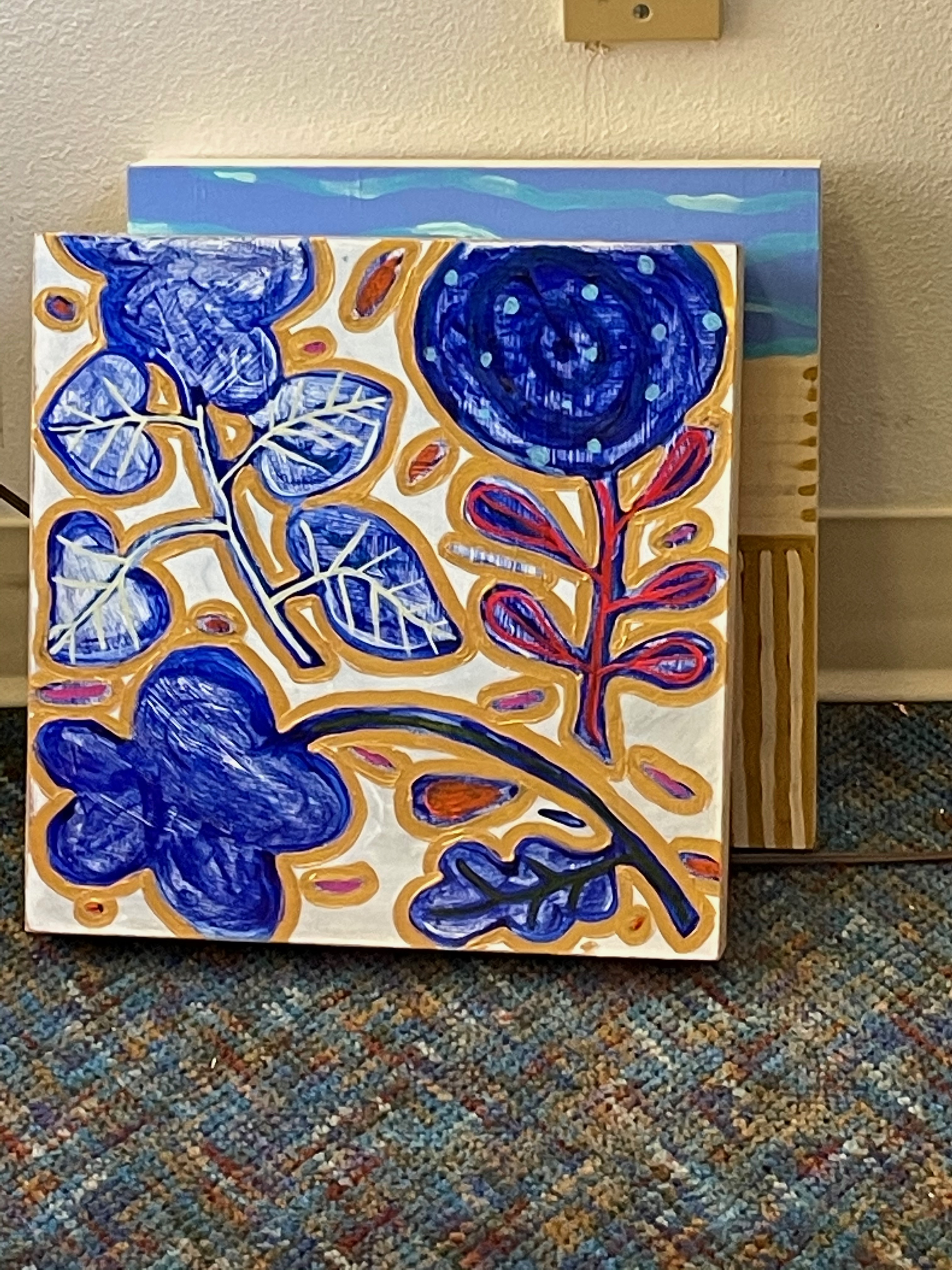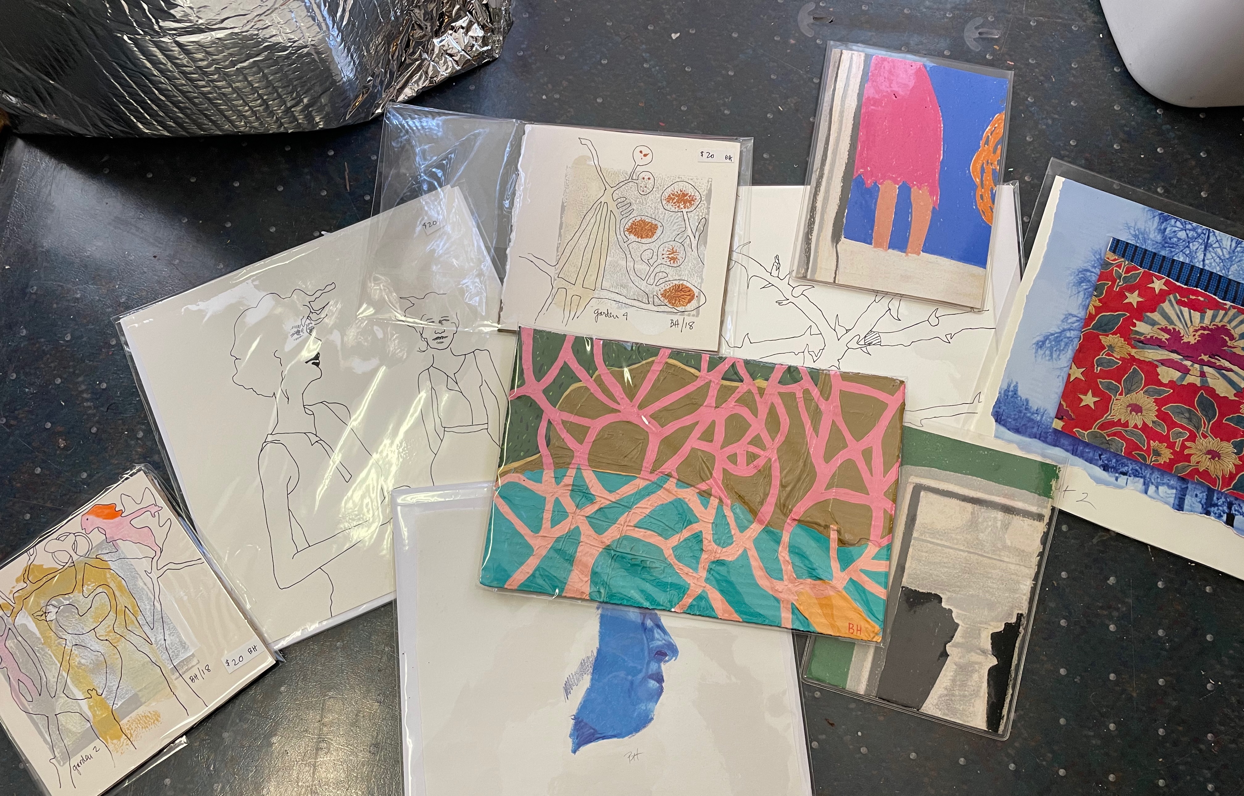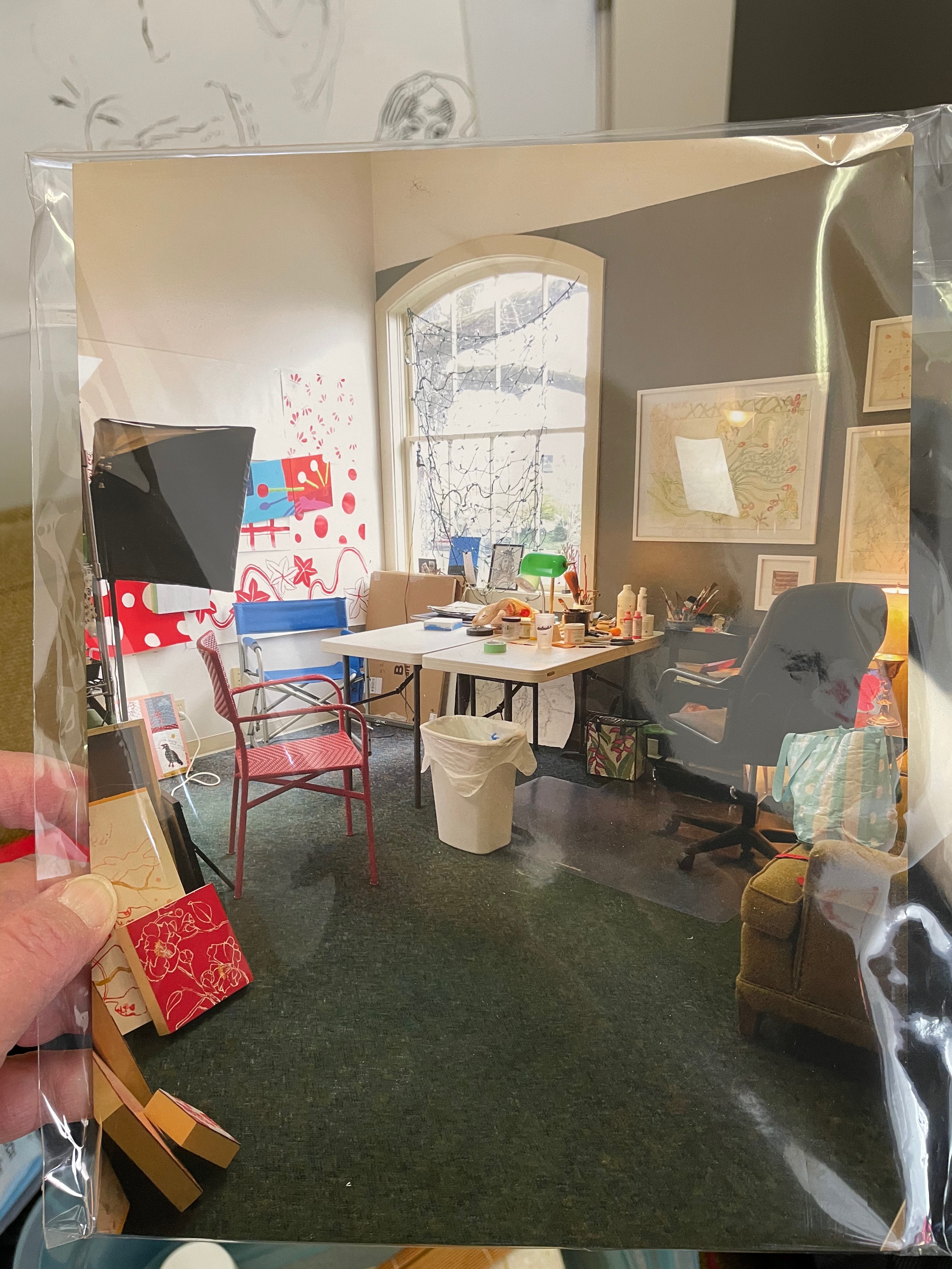 I’m mucking out my studio in earnest these days as December is underway…move out in December, move into new space in January…sorting, tossing…keep/save?  Dilemmas.  And slow because, as usual, thing have a way of popping up…Here’s Susan’s photo of 2018 when things were tidy for an Open Studio…