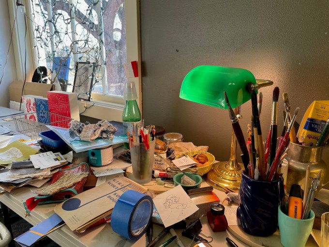 2. Creative messes, older work – hard to get rid of because there are always new possibilities for this stuff even though we don’t know what it is right this minute:)