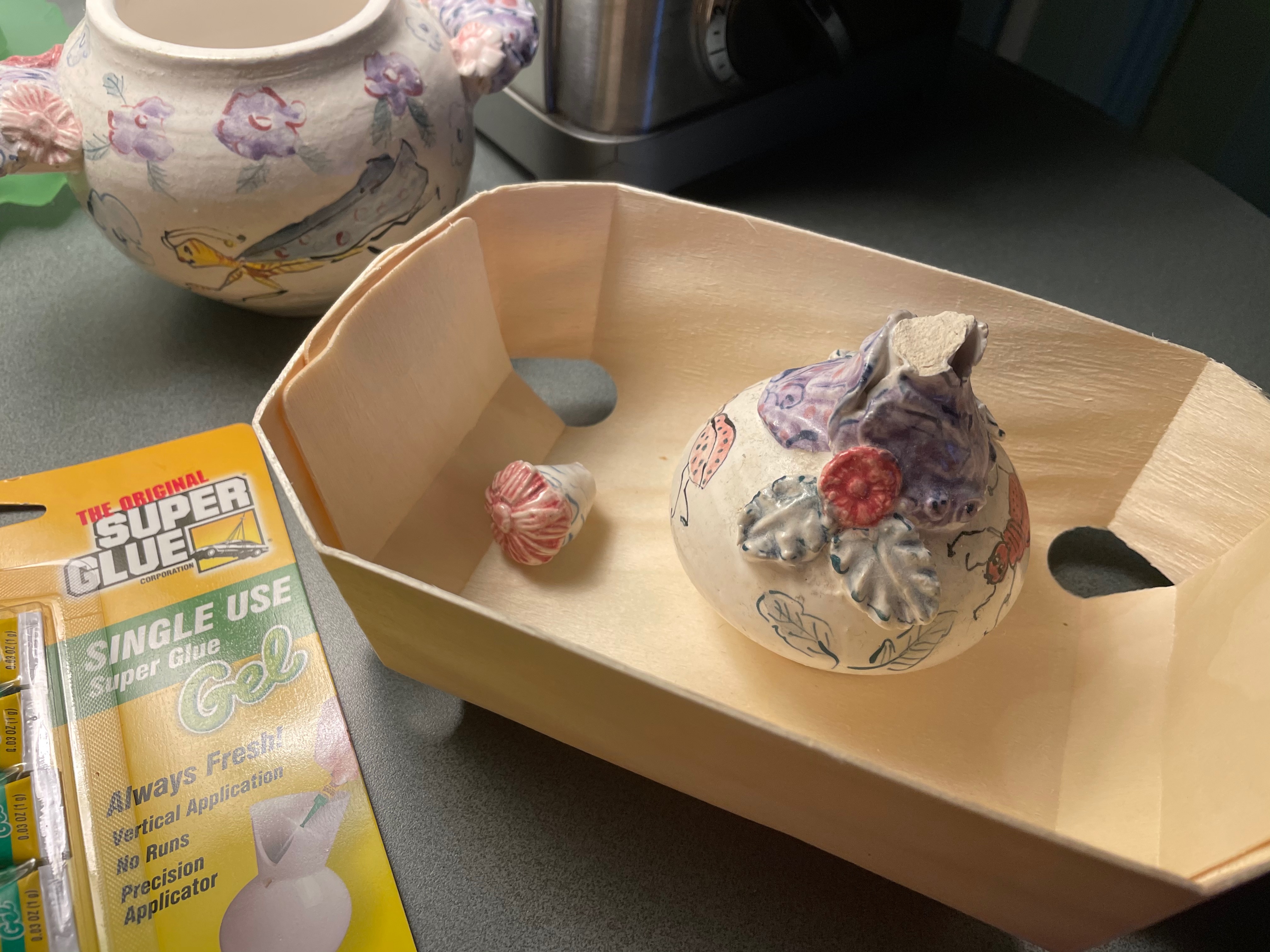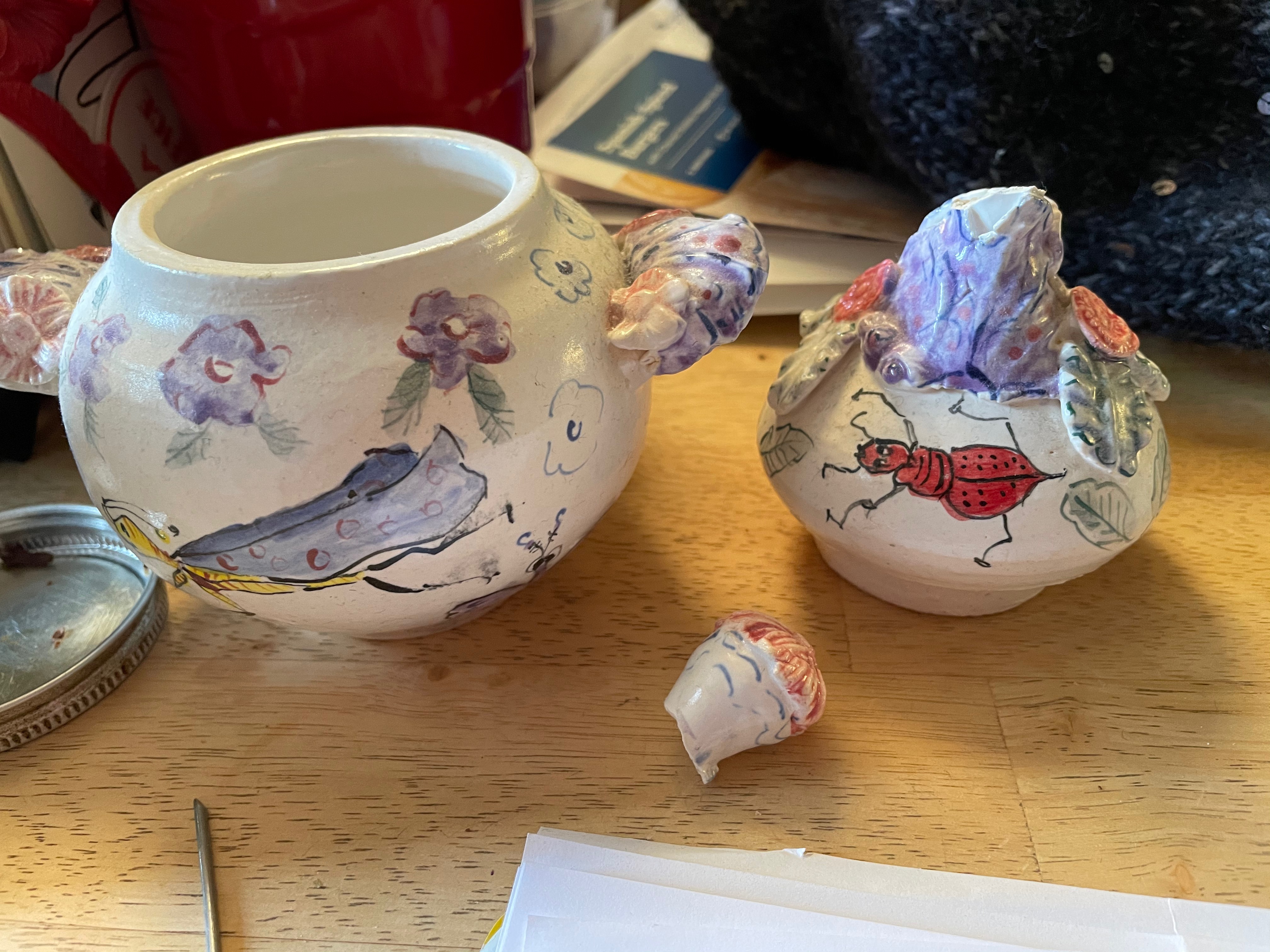 but there was a Christmas bonus. After a semi-tragic accident, Sue Mason’s nice pot has been restored by an elf…