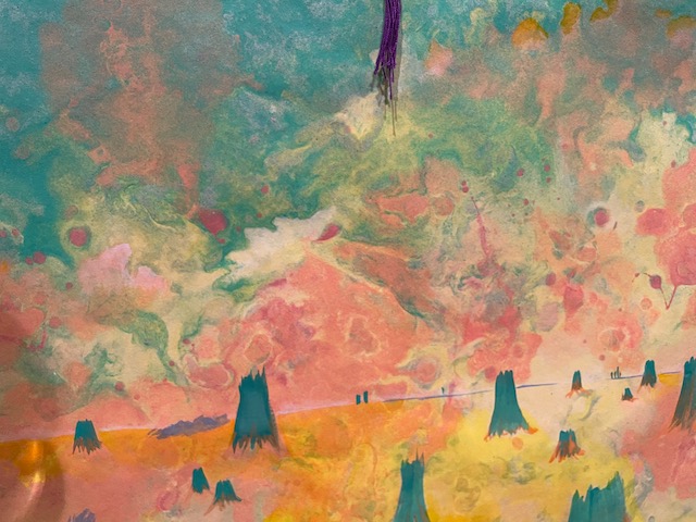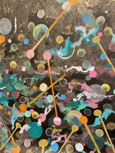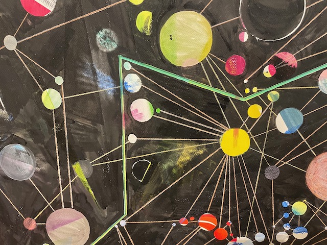 I’m a little rusty on my image taking these days, and there were no labels, so here are a few of Cayla’s very nice drawings…she was working toward this exhibit for 2020…and in 2019 mentioned she felt the world was ready to explode, something that is present in the images on view. The pandemic closed the museum, and the world, but Cayla continued mapping her thoughts and observations to add to this 2021 exhibit.