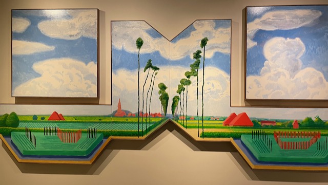 and a David Hockney paiinting of 2020, after Hobbema. Take your phone so you can look up the Hobbema painting “The Avenue at Middelharnis” of 1689. I’m not reproducing it here because the fun of it is standing in front of the Hockey and calling up the Hobbema…go see.
