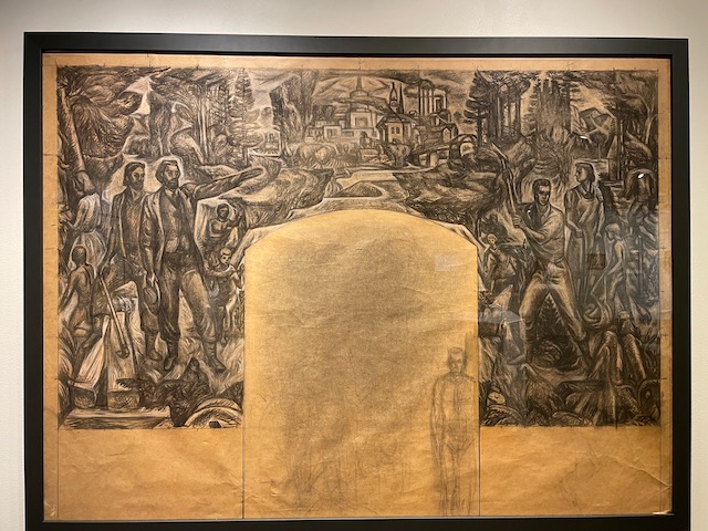 I was interested to see this drawing of an Andrew Vincent mural on the old Salem Post Office wall (now a State of Oregon office Building.)