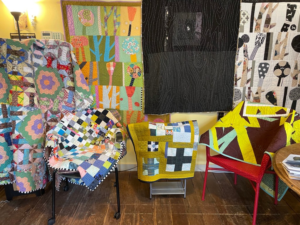 Because my painting studio is part of the Studios at the Mill (at the Willamette Heritage Center) because I’m on the first floor and now accessible, because I am also a quilter…all the the indications were pointing to getting out some quilts and joining the fun.