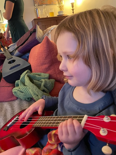 A perfect Christmas and a perfect blog post for the ending of 2021! Vivien in pink flippers is a child star, so pretty. And Dave enjoyed seeing the book Sidney was using to identify all the tiny parts that apparently belong to the spacecraft he is constructing. Dave, of course, constructed cars not spaceships. Reading and looking at your pictures on your blog post today made us feel happy, which is a great feeling to have aroused at the end of this year. The photo with you in it is a winner! What a scarf! Here we go into 2022! Cheers!